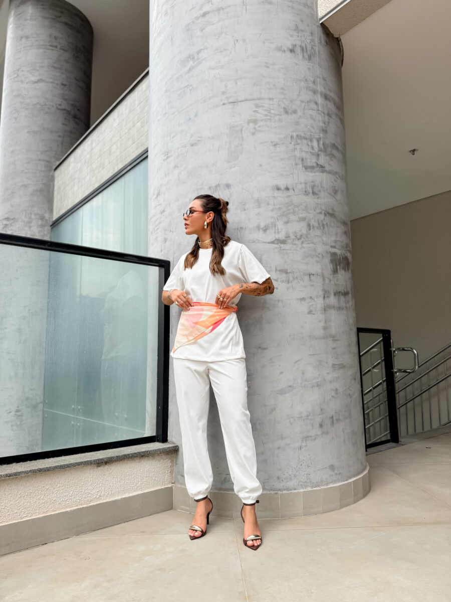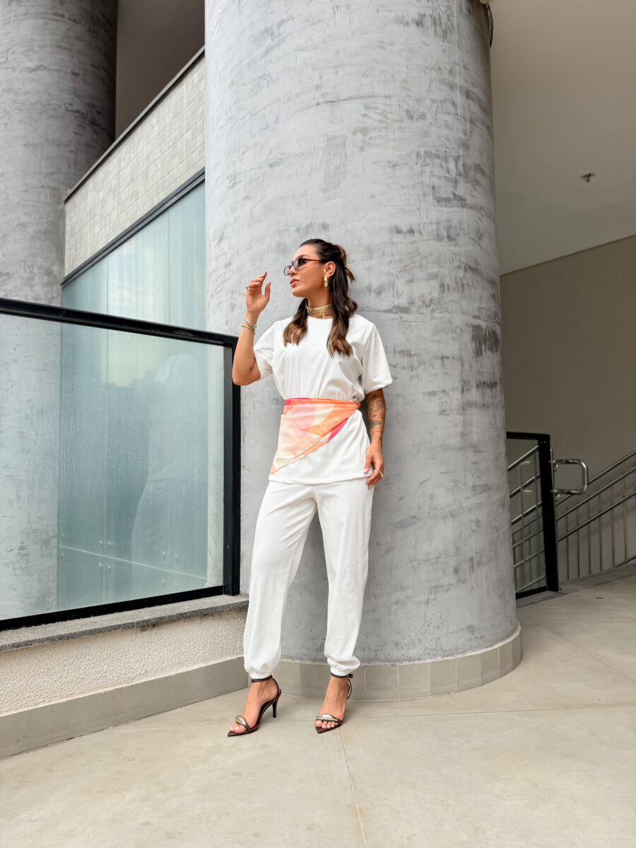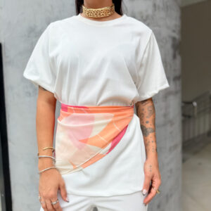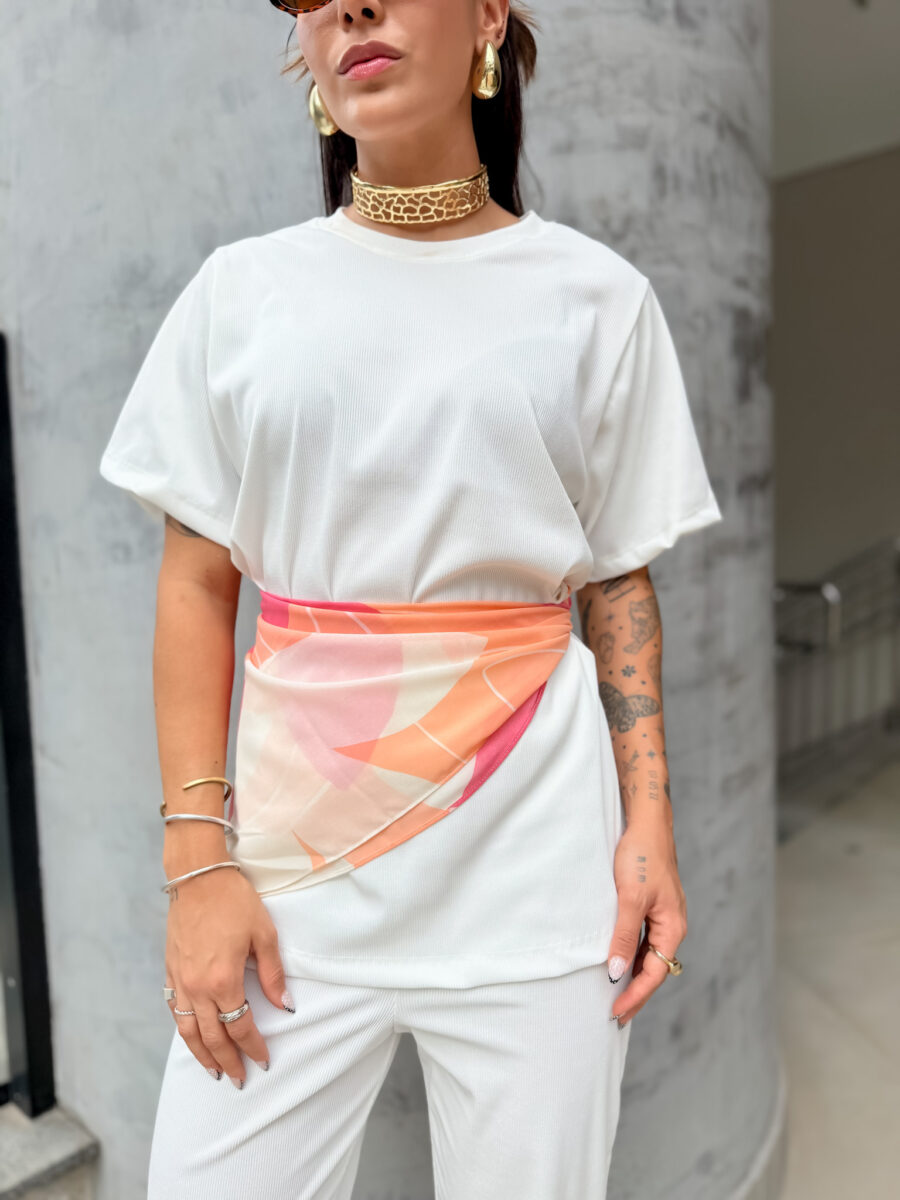T Shirt mais alongada, alça cos alto com punho em elástico.
