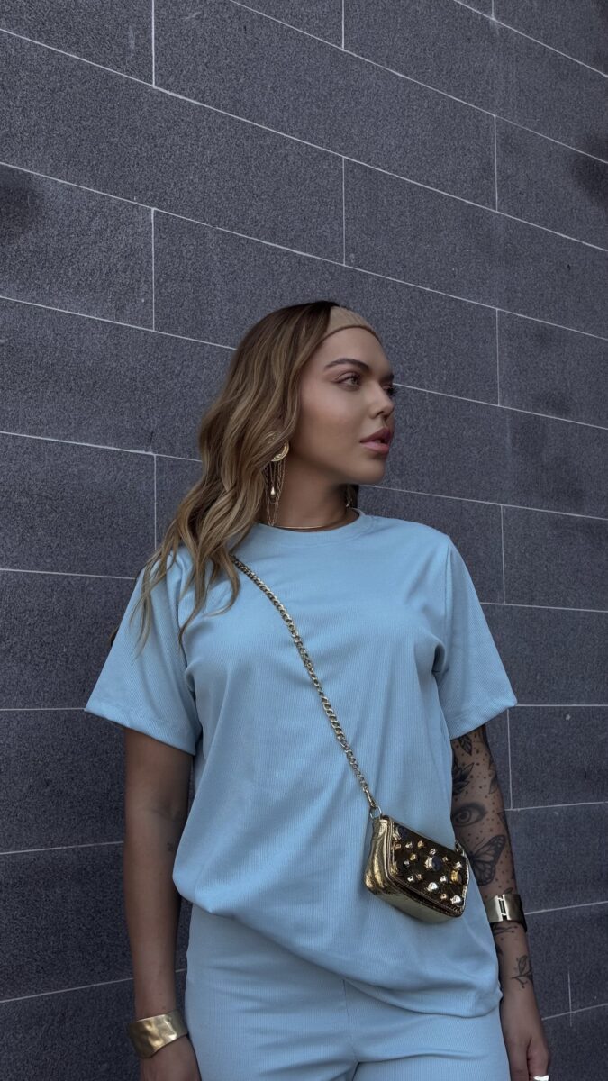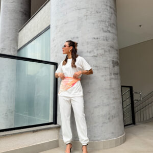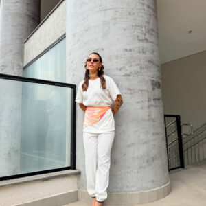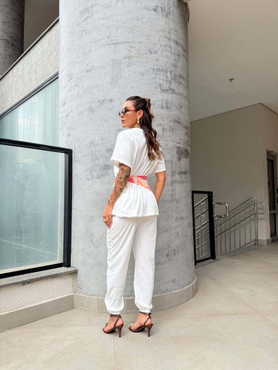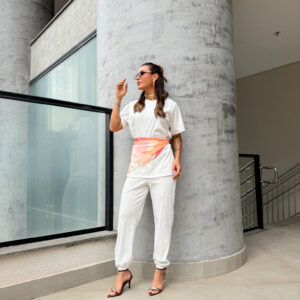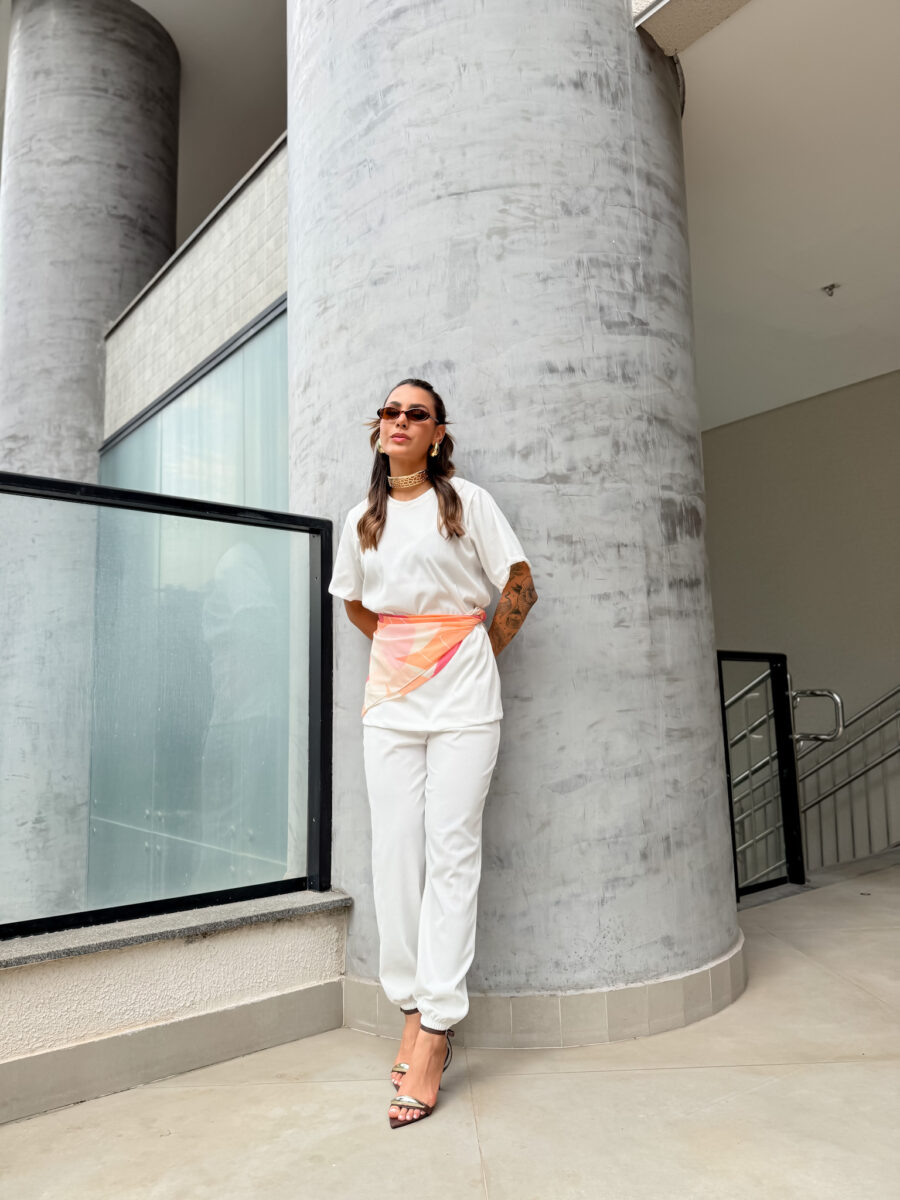 T Shirt mais alongada, alça cos alto com punho em elástico.