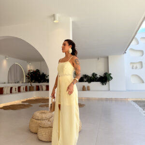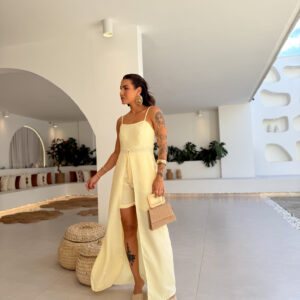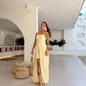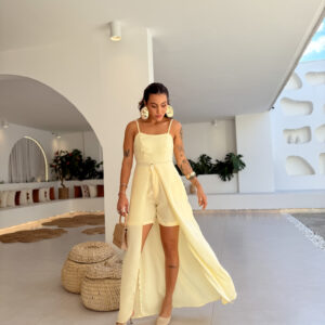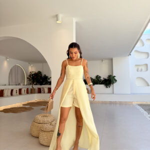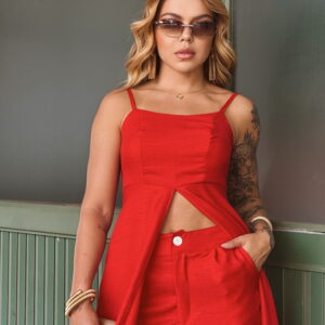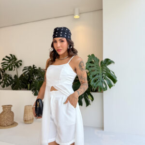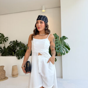 Bermuda cos alto com cos em elástico, zíper e botão! Túnica com peito dublo, alça ajustável e lastex nas costas.