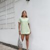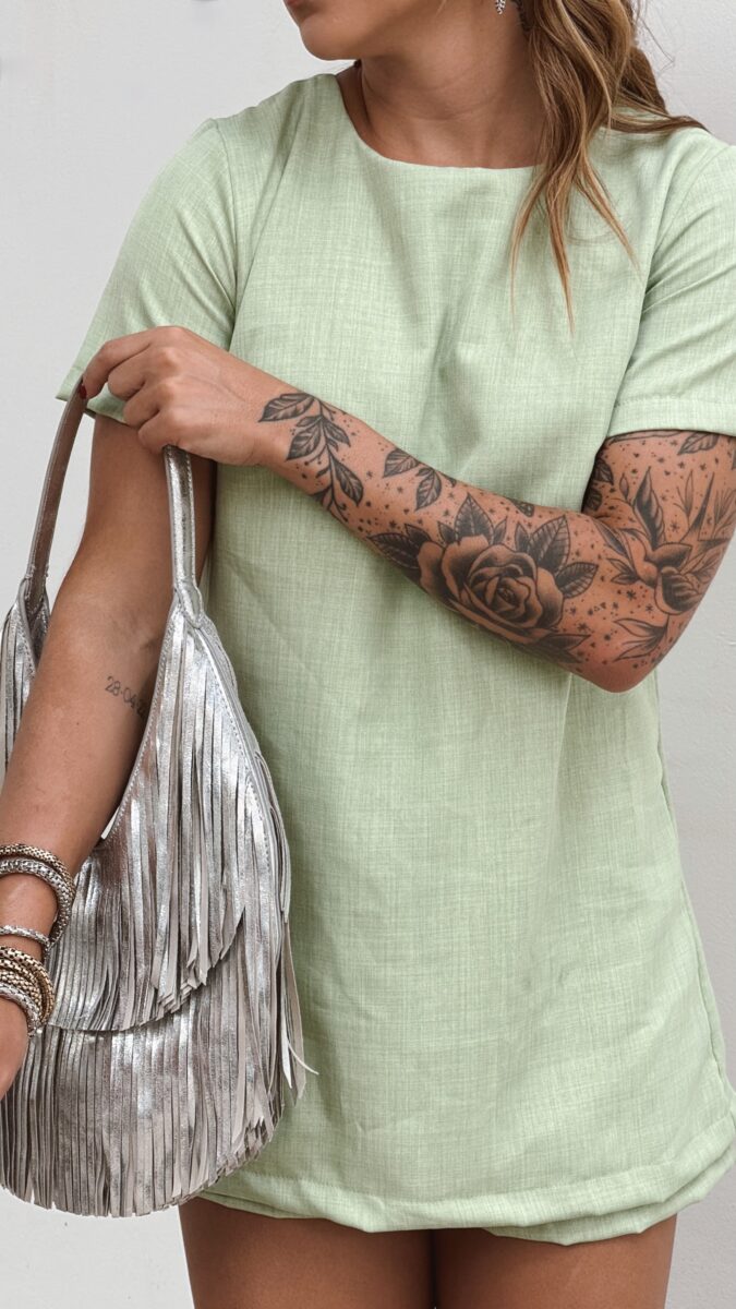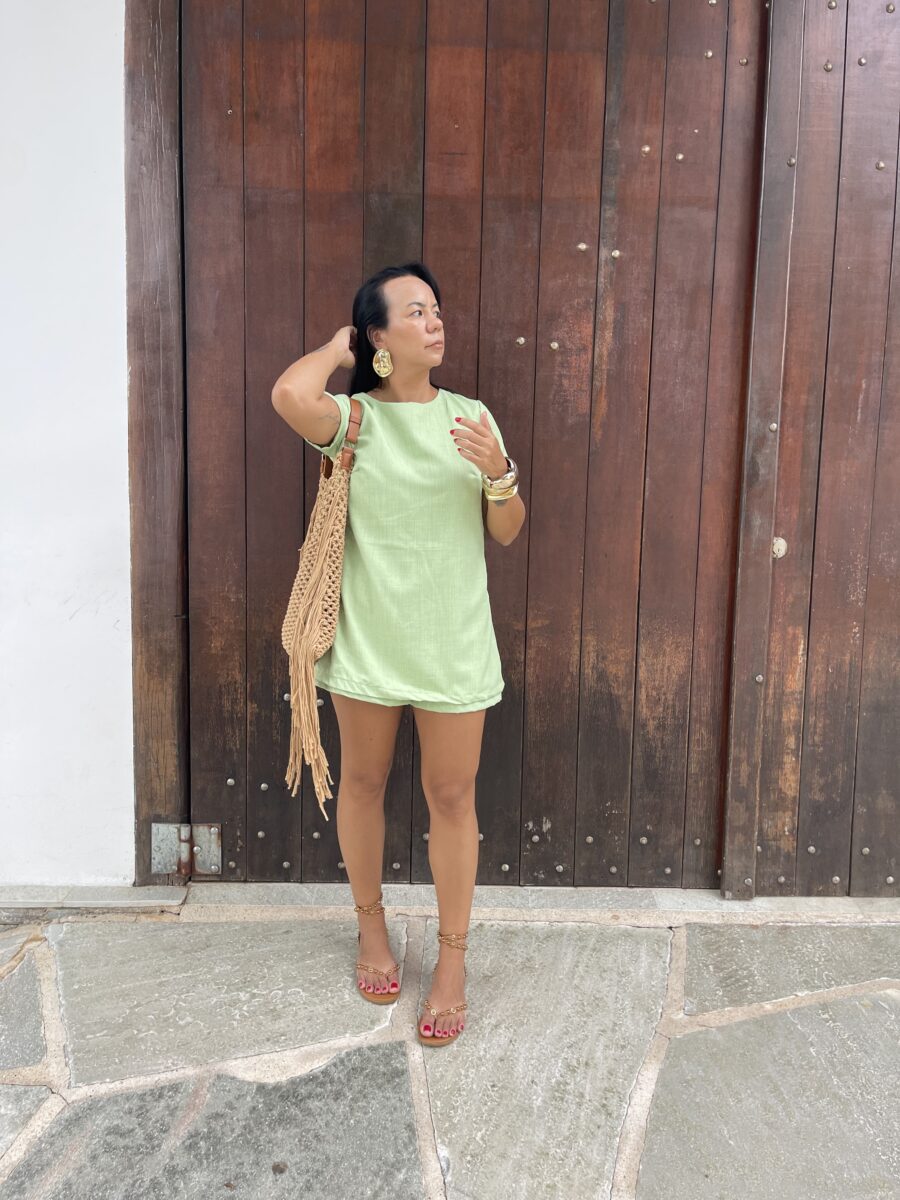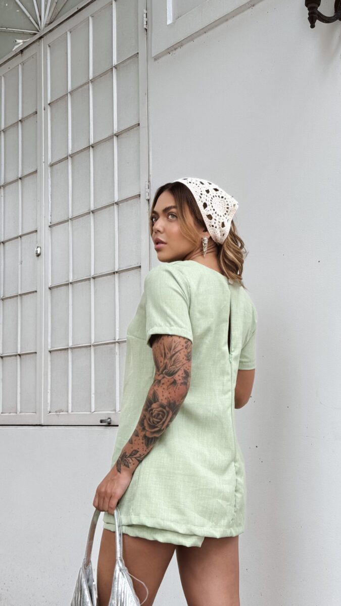 Vestido macaquinho, zíper atrás e botões.