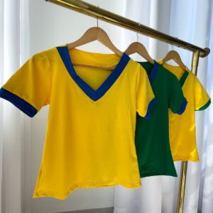 Descrição: A T-shirt BR carrega consigo as cores da bandeira, com gola em V e toda no 100% algodão, são super confortáveis!!