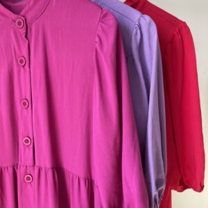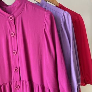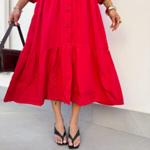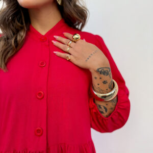 Vestido mídi, gola padre, babados, mangas 3/4 com punho de elástico, botões na frente!