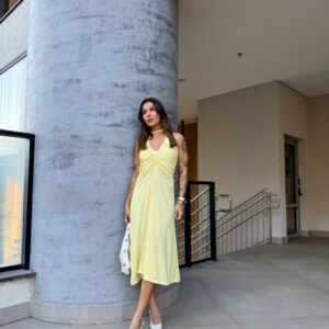 Vestido Midi Rodado, decote na frente com Elastico, pode ser regulado conforme o busto da cliente, feito no melhor canelado do mercado!