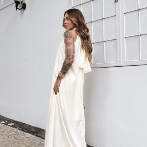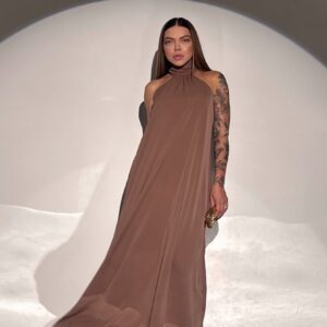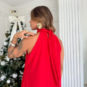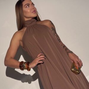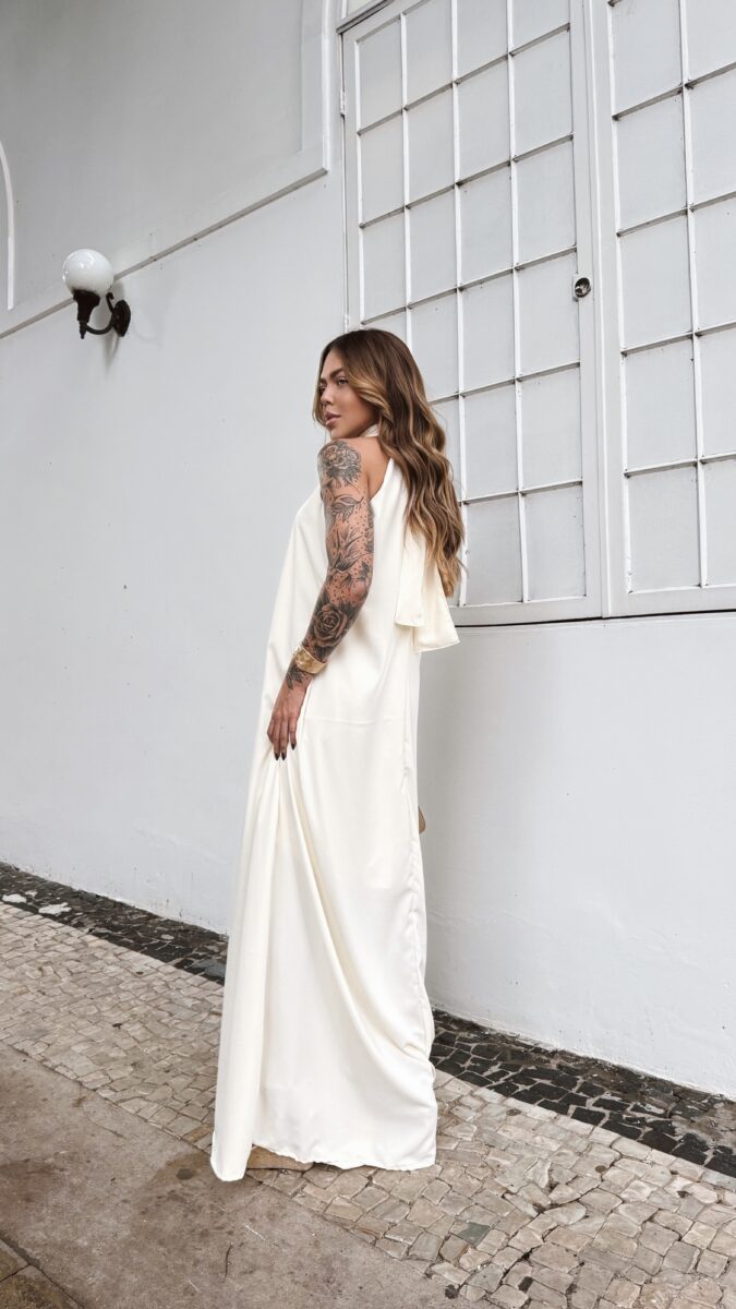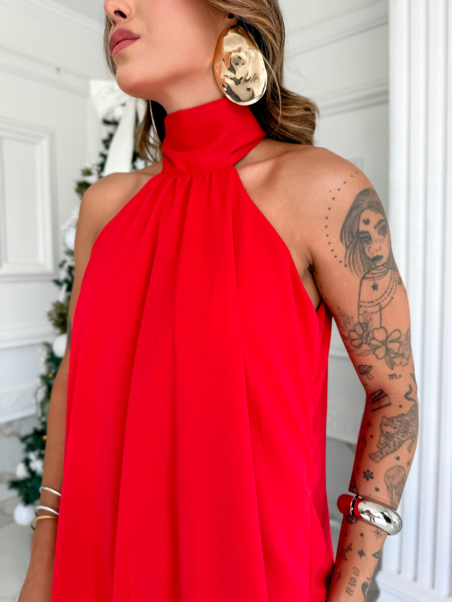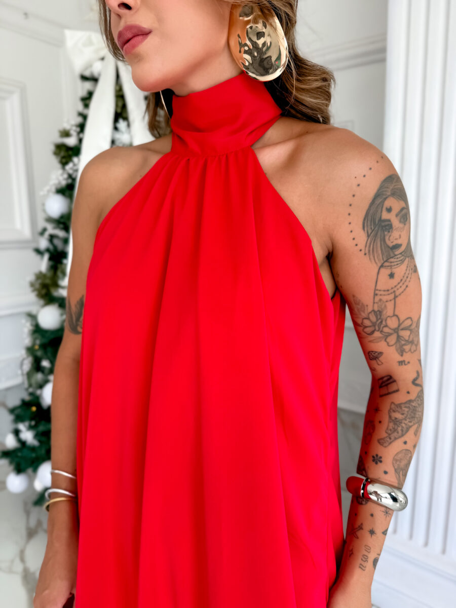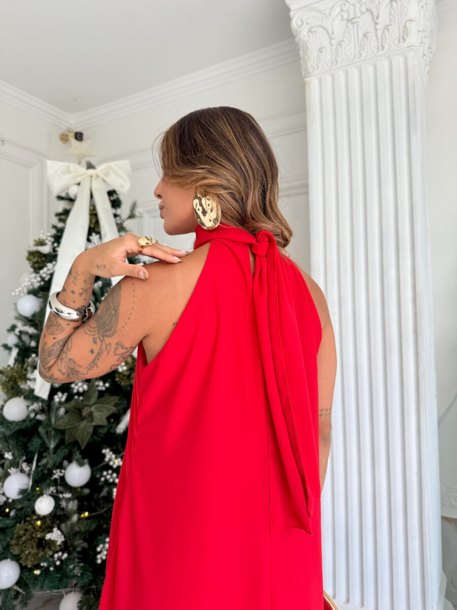 Vestido longo, Todo duplo, gola alta com amarração atrás, um leve abertura atrás. Tecido dele importado super elegante, com toque macio e com 2 % de elástano
