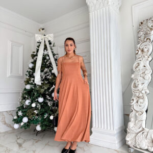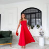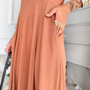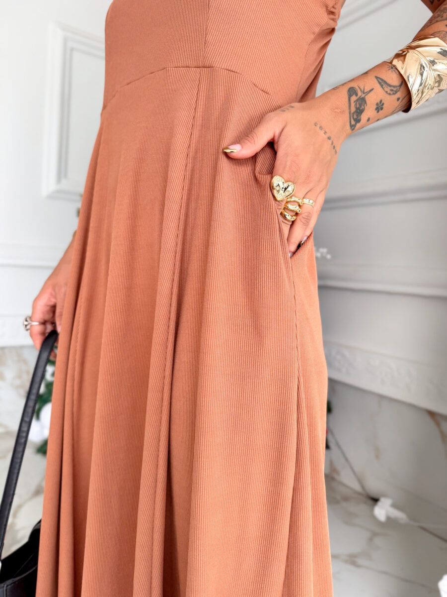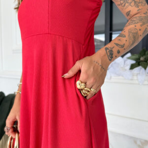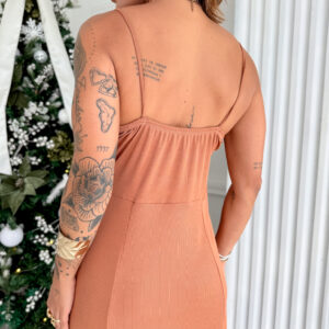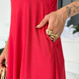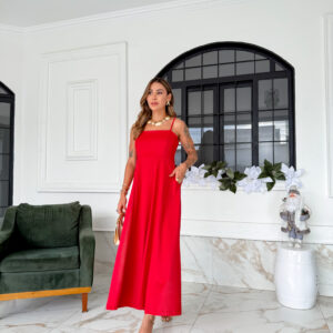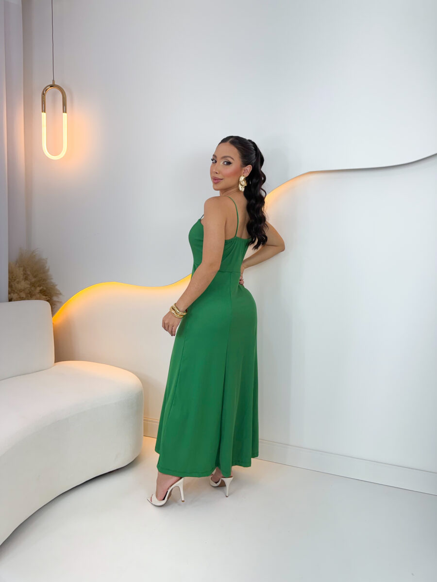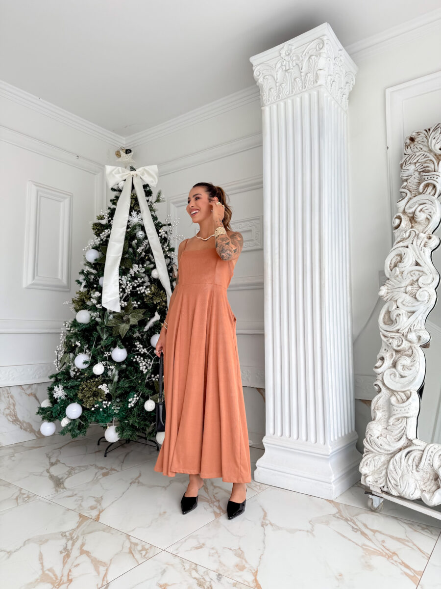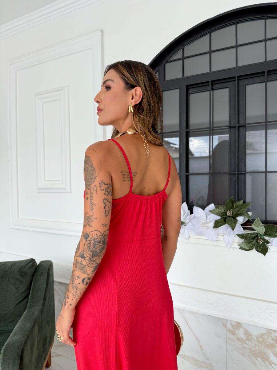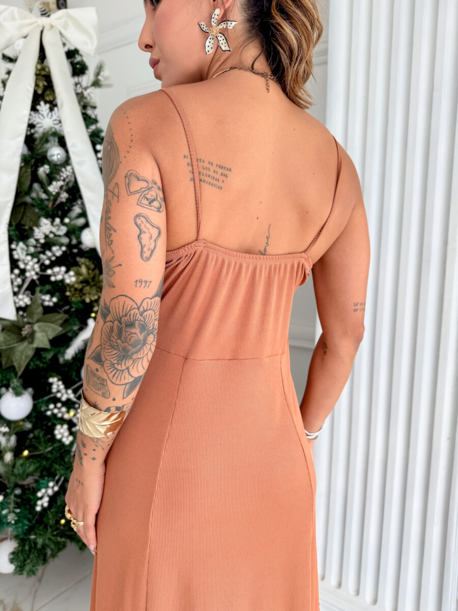 VESTIDO mídi rodado com bolso na lateral, alça fina elástico atrás