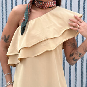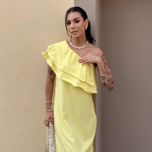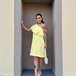 Vestido Nula Manga, 2 babados elástico e zíper na lateral. Fenda nas laterais acompanha o short segunda pele( tamanho único).